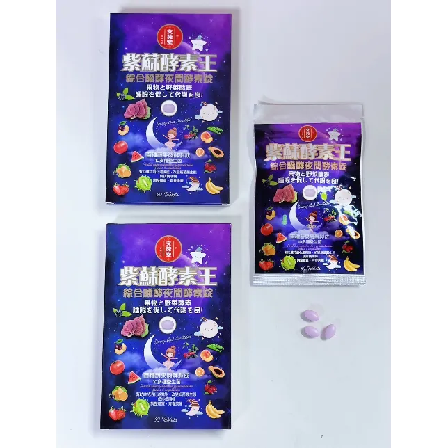 🪻紫蘇酵素王夜間酵素錠🪻 🌟容量:500mg/粒, 60粒/盒。 🌟食用方法:每日1錠。 🌟保存期限:3年。 🌟原產地(國):台灣。